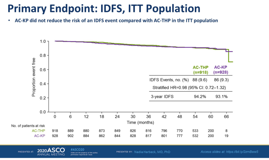 KRISTINE研究作为第一个在HER2阳性乳腺癌患者治疗中全程应用双靶的研究,随访37个月的研究结果显示,TCH+P方案对比T-DM1+P方案有更高的pCR率,且TCH+P方案与T-DM1+P方案中获得pCR患者的IDFS可分别达97.5%和 96.7%。而TRAIN-2研究中,研究组在接受9周的TCbHP方案后仅用曲妥珠单抗进行辅助治疗,结果显示,新辅助治疗达到pCR的人群中,3年DFS率为94.1%。因此,新辅助治疗后达到pCR的患者值得去进一步讨论降阶梯治疗吗?