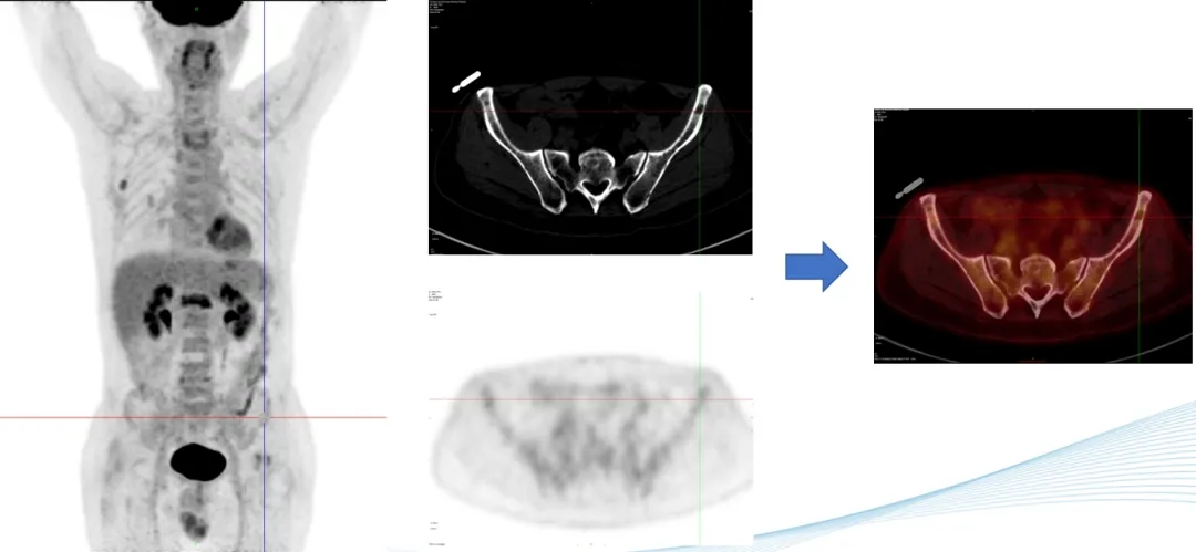 前海人寿南宁医院核医学科PET-CT中心的阅片团队对扫描获得的李叔叔的全身影像图片反复多次的观察与比对,凭借着二十几年丰富的阅片经验,核医学科陈伟华主任发现,李叔叔肩胛骨、腰椎多处、双侧髂骨、左侧耻骨等出现了斑点片状、虫蚀样等形态溶骨性骨破坏,考虑恶性病变,多发性骨髓瘤可能性大,建议李叔叔立即进行骨髓穿刺检查。病理学检查结果证实了陈主任的影像诊断。腰痛的罪魁祸首终于找到,目前李叔叔已针对病因进行精准联合化疗。